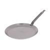 DE BUYER nizka ponev za palačinke s premerom 26 cm (in notranjim premerom dna 22,5 cm) je narejena iz visokokakovostnega železa, prevlečenega s čebeljim voskom, ki ustvari zaščitni premaz pred oksidacijo, hkrati pa je to tudi naravna obloga proti sprijemanju živil pri prvi uporabi. Z vsako nadaljnjo rabo bo ponev postala temnejša, ustvaril se bo zaščitni sloj, palačinke pa se na ta način ne bodo trgale in sprijemale na dno posode. Ponev je primerna za vse kuhalne površine, vključno z indukcijo. Ne uporabljajte detergentov in ponve ne vstavljajte v pomivalni stroj. Ponev po vsaki uporabi sperite z vročo vodo, jo osušite, nato pa jo rahlo premažite z oljem in shranite v suhem prostoru, da preprečite rjavenje.Francoski proizvajalec De Buyer je vodilni na področju proizvodnje visokokakovostne kuhinjske posode že od leta 1830. Vsi njihovi izdelki so narejeni iz 100% naravnih materialov, prav tako je okolju prijazen tudi sam postopek izdelave. Posoda je namenjena vsem tistim, ki dajejo velik poudarek zdravemu načinu kuhanja, skrbi za okolje, prisegajo na visoko kakovost materialov, polnost okusov in sledijo tradiciji v kuhanju. Primerna je tako za domača gospodinjstva kot za profesionalno uporabo, posoda De Buyer namreč svoj svetovni ugled uveljavljala v najprestižnejših hotelih in restavracijah.