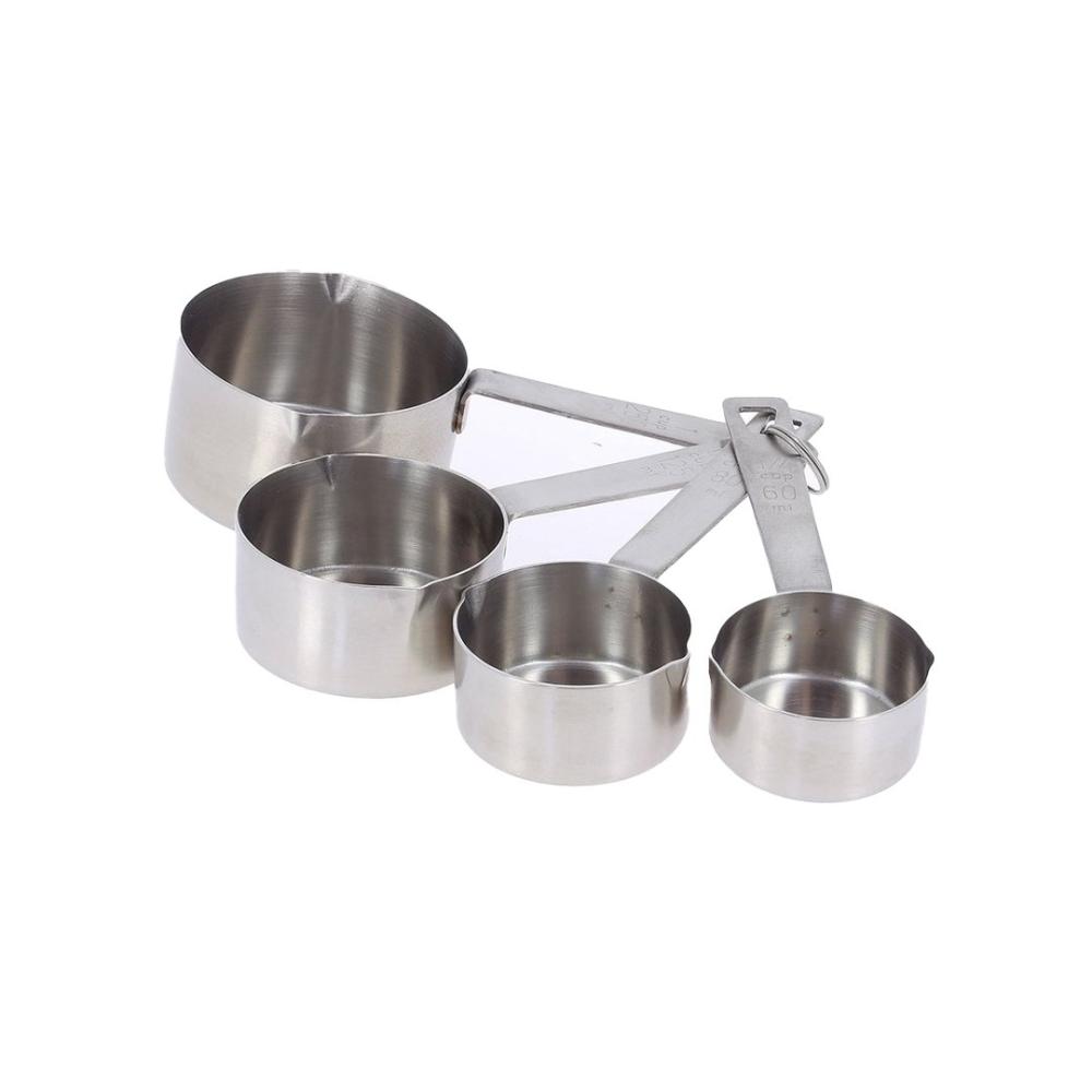 Set 4 De Buyer merilnih skodelic iz nerjavečega jekla v velikosti 60 / 80 / 125 in 250 ml (oz. 1/4 cup, 1/3 cup, 1/2 cup, 1 cup).Francoski proizvajalec De Buyer je vodilni na področju proizvodnje visokokakovostne kuhinjske posode že od leta 1830. Vsi njihovi izdelki so narejeni iz 100% naravnih materialov, prav tako je okolju prijazen tudi sam postopek izdelave. Posoda je namenjena vsem tistim, ki dajejo velik poudarek zdravemu načinu kuhanja, skrbi za okolje, prisegajo na visoko kakovost materialov, polnost okusov in sledijo tradiciji v kuhanju. Primerna je tako za domača gospodinjstva kot za profesionalno uporabo, posoda De Buyer namreč svoj svetovni ugled uveljavljala v najprestižnejših hotelih in restavracijah.