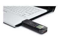 Digitalni diktafon s priključkom USB, čas delovanja baterije do 57 ur (mp3 128 kb/s, stereo), 4 GB pomnilnika in predvajalnik zvoka mp3.Neposredna priključitev USB za hiter prenos datotek