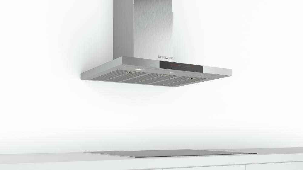 Stenska kaminska napa: pritrjena na steno vam daje svobodo pri načrtovanju kuhinje.