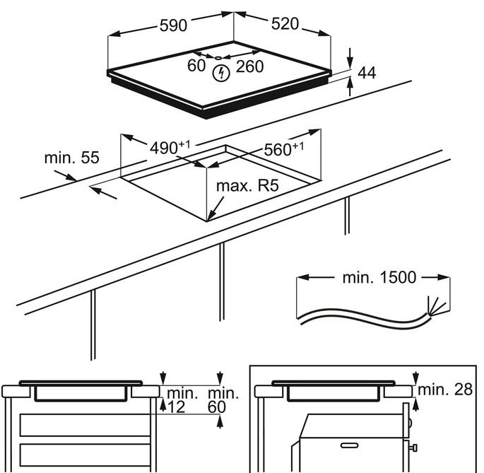 Vgradne dimenzije (VxŠxG mm): 44x560x490