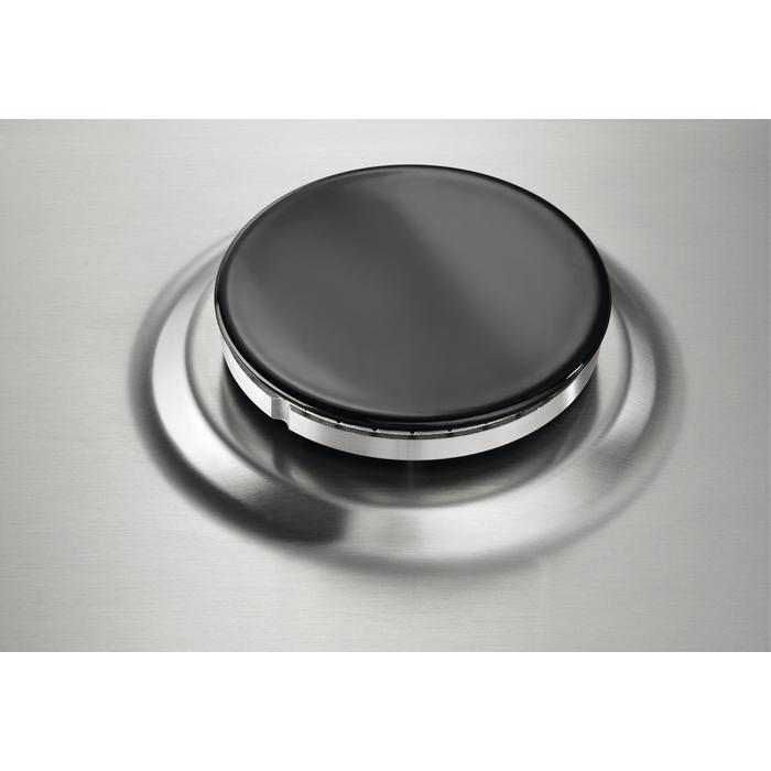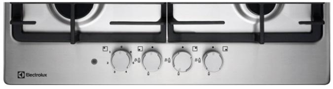 Kombinirana kuhalna plošča Electrolux KGM64310X ima 3 plinska kuhališča in 1 električno kuhališče, katera se upravljajo z vrtljivimi gumbi. Je iz plemenitega jekla z robom proti razlitju. Plošča odlikuje tudi varnostni samodejni izklop.