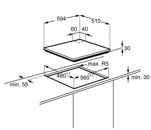 Vgradne dimenzije (VxŠxG mm): 51x560x480