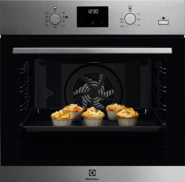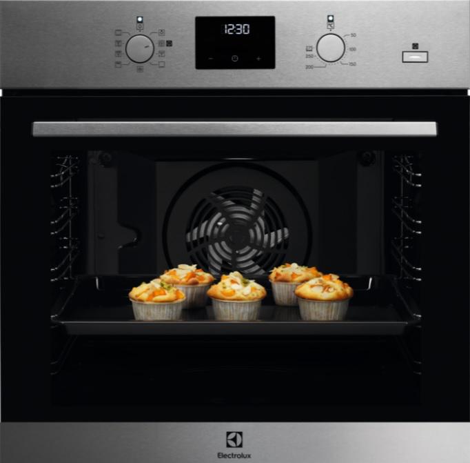 Vgradna pečica Electrolux EOD3H50TX je pečica z ventilatorjem, prostornino 72 l in energijskim razredom A. Zunanjost je iz plemenitega jekla neobčutljivega na prstne odtise. Pečica ima na voljo 9 funkcij in timer s 5 nastavitvami. Opremljena je z 1 parom teleskopskim vodil, 2 pladnji in 1 rešetko.