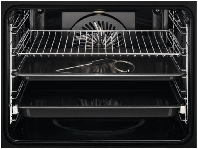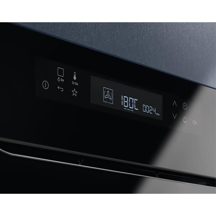 Vgradna pečica Electrolux EOE7P31Z z zunanjostjo iz črnega stekla spada v energijski razred A+ in ima prostornino notranjosti 71 l. S pomočjo LCD zaslona hitro pridobite informacije o temperaturi, funkciji delovanja in času kuhanja. Za nastavitev funkcij in programov ima na voljo 10 tipk na dotik. Za ohranjanje čiste pečice uporabite pirolitično čiščenje. Ta sistem samodejnega čiščenja segreje pečico do temperature, ki spremeni ostanke maščobe in druge ostanke v pepel. To pomeni, da morate dno samo obrisati.