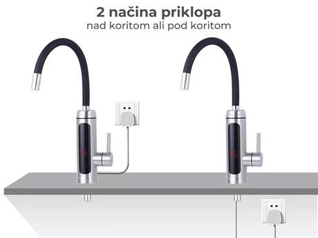 Električna grelna pipa dva načina priklopa - na električno omrežje se lahko priklopi nad ali pod koritom. Med drugimi lastnostmi im tudi veliko dodatnih prednosti, ki še olajšajo njeno uporabo
