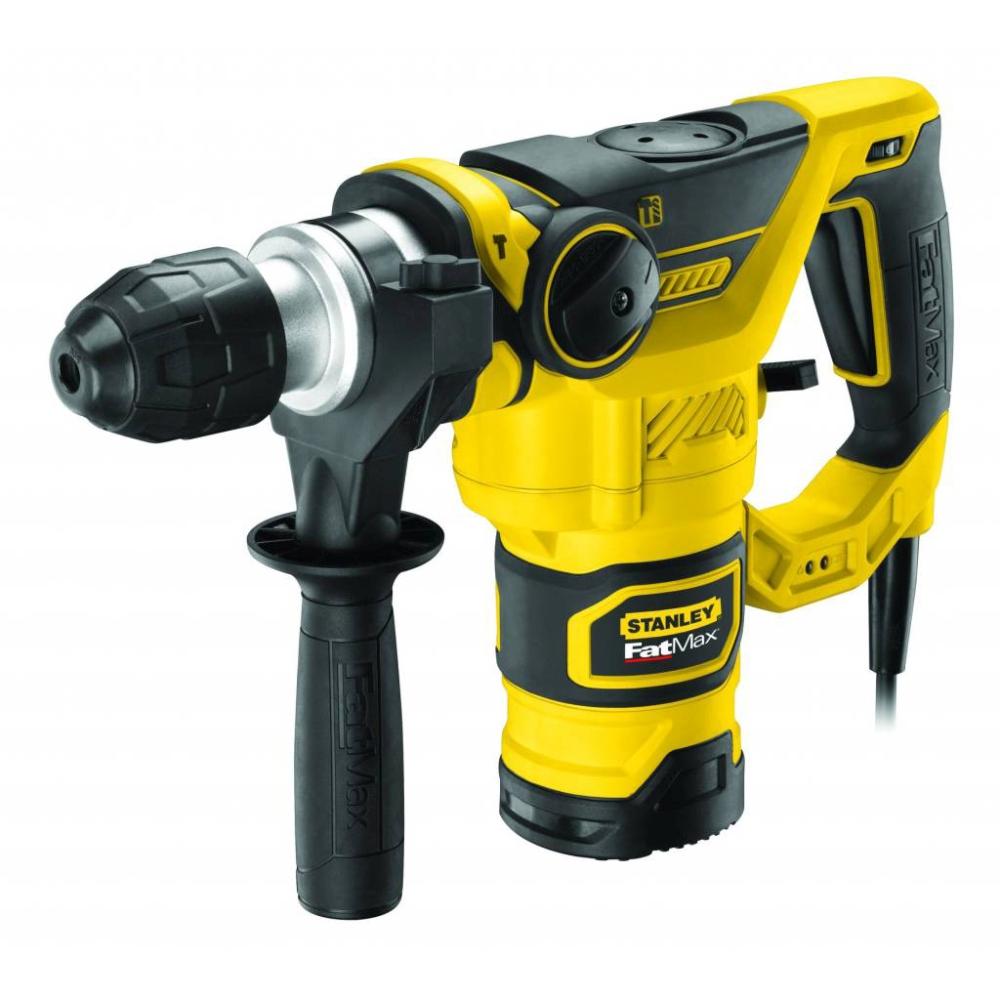 Udarno kladivo SDS-Plus Stanley Fatmax FME1250K je 1.250 W udarno kladivo s pnevmatskim mehanizmom. Ima levo in desno delovanje. Odlikuje ga ergonomsko oblikovan in gumiran ročaj za dober oprijem in varno uporabo. Največja kapaciteta vrtanja v les je 40 mm, v jeklo 13 mm in v beton 32 mm. Ima SDS-Plus vpetje. Ohišje je dobro zatesnjeno in odporno na prah za daljšo življenjsko dobo. Ima 4 m dolg kabel. V opremi je SDS adapter, glava, dleto, 2 SDS svedra, ergonomsko oblikovan in gumiran stranski ročaj ter kovček za varen transport in shranjevanje kladiva. Lastnosti: - moč: 1.250 W - hitrost: 0-850 /min - št. udarcev: 0-4.100 /min - udarna energija: 3,5 J - masa: 5,4 kg