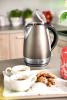 Brezžična zasnova s podstavkom in kakovostnim kontaktnim sistemom, ki zagotavlja visoko varnost in dolgo življenjsko dobo. Pri polnjenju grelnika vode boste cenili indikator nivoja vode. Odstranljiv, pralni filter preprečuje nastanek vodnega kamna. Opremljen je z varnostnim tečajem s pokrovom, samodejnim izklopom, ko je doseženo vrelišče, in mu ne manjka zaščitna varovalka, ki se aktivira v prostem teku ali nevarnosti pregrevanja.