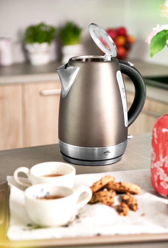 ETA Ela 8598 90040 je grelnik vode iz nerjavečega jekla v sveži antracitno sivi izvedbi z enostavnim vzdrževanjem. V njem je lahko do 1,7 l vode, njegova velika poraba energije 2100 W pa zagotavlja hitro doseganje vrelišča.