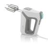 Ročni mešalnik v belo sivi barvi je zasnovan za maksimalno udobje med uporabo.