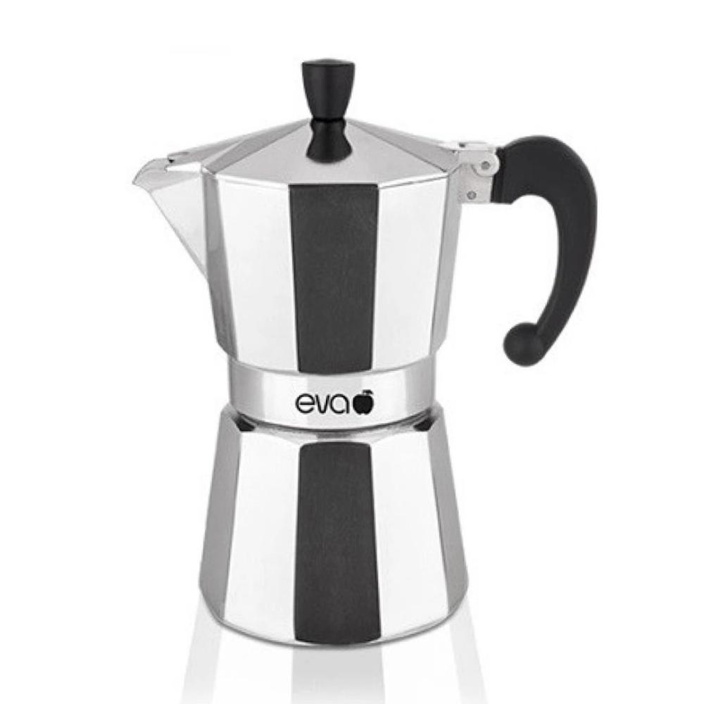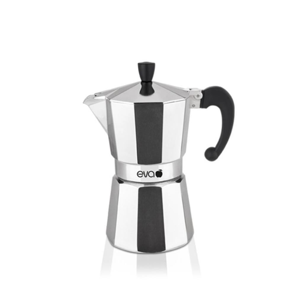 Za tiste, ki prisegate na klasičen dizajn, je KAFETIERA EVA popolna izbira. Njena dovršena oglata oblika je izdelana iz aluminija in primerna za uporabo na električnih, plinskih in keramičnih kuhalnih površinah. Ergonomski ročaj olajša prenašanje in točenje kave, vključno z delom za točenje, ki preprečuje kapljanje. Kafetiera je opremljena s silikonskim tesnilom, ki zagotavlja popolno tesnjenje.