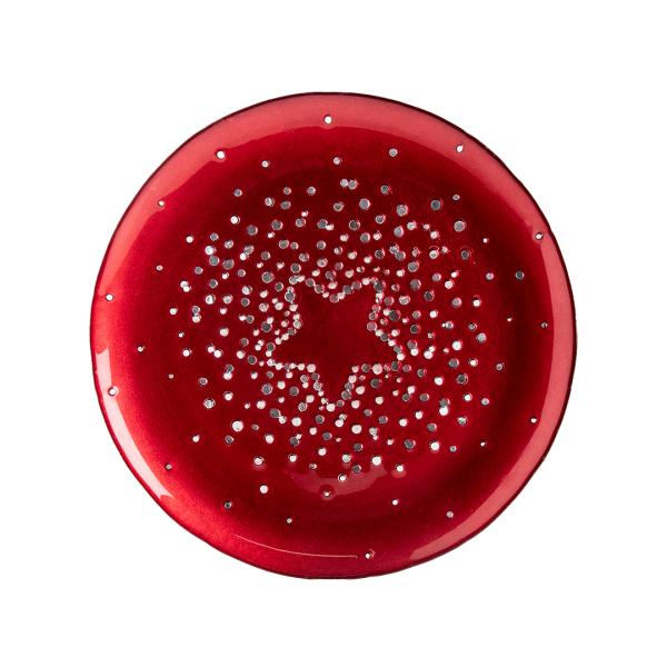 Prelep okrogel DEKORATIVNI KROŽNIK ISTANBUL s premerom 32 cm in svetlikajočim motivom zvezde se bo odlično podal v vaš praznično okrašen dom in vas navdal s toplino in božično-novoletnim vzdušjem. Pomijte ga ročno.