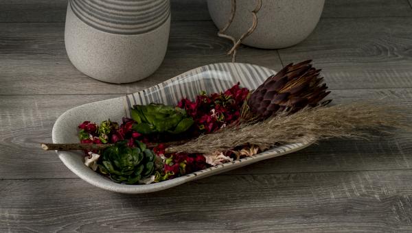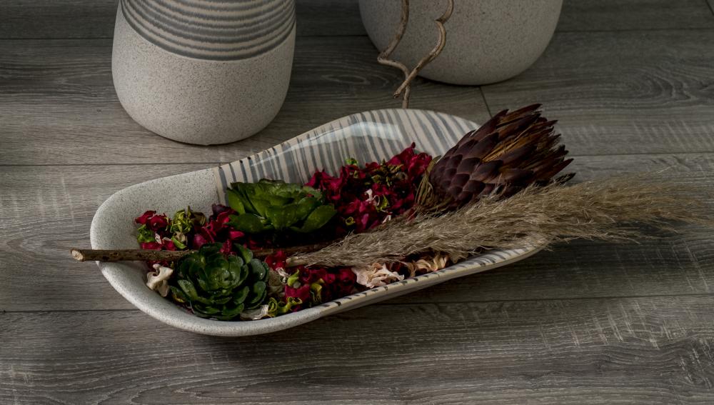 Prefinjena visokokakovostna KERAMIČNA SKLEDA elegantne linije MALIBU bo zagotovo popestrila vaš dom. Uporabite jo lahko kot dekoracijo ali pa serviranje. Njen lesketajoči videz je dopolnjen s črtastimi detajli, ki bodo popestrili vsak prostor ali pohištvo. Skleda meri 43 x 22 cm.