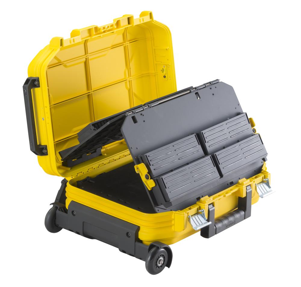 Stanley Fatmax kovček za orodje - Robusten zaščitni kovček s kovinskimi zapah - ojačan s steklenimi vlakni - Odstranljive in zložljive predelne stene za fleksibilnost in dosegjivost orodja med delom - Gumiran ročaj za izboljšan oprijem in udobje - Zaščita posode s steklenimi vlakni s kovinskimi zaponkami - Odstranljve "posodice" za lažjo organizacijo - Harmoničasta zasnova za boljšo dostopnost in pregled nad orodjem - Podporne noge na hrbtni strani pokrova za dodatno stabilnost med odpiranjem - Kartica z imenom in zaklepanjem z obešanko