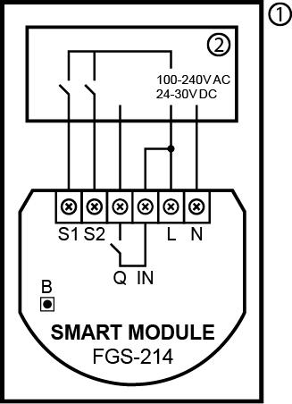 - Pametni modul (FGS-214) omogoča krmiljenje ene naprave ali vezja, dvojni pametni modul (FGS-224) pa omogoča krmiljenje dveh naprav ali vezij.