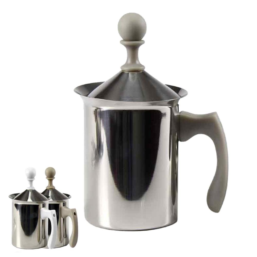 Lonček za penjenje mleka 800 ml je izdelan iz nerjavečega jekla in ročajem iz plastičnega trpežnega materiala v različnih barvah. Plastičen bat z mrežico iz nerjavečega jekla bo poskrbel za gosto mlečno peno in uživanje ob pitju vaše kave. Penilec lahko pomijete v pomivalnem stroju.