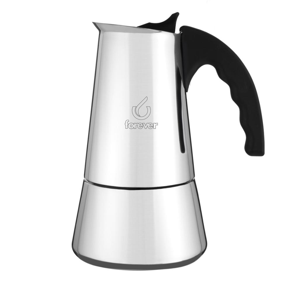FOREVER KAFETIERA MISS CONNY je izdelana iz trdnega nerjavečega jekla. Moderna oblika z ergonomskim nedrsečim ročajem za udoben oprijem se bo podala v vsako kuhinjo. Spodnji razširjen del bo poskrbel za večjo stabilnost kafetiere na podlagi, toplotno odporno tesnilo pa za popolno tesnjenje. Primerna je za uporabo na vseh kuhalnih površinah, tudi indukciji. Kafetiero lahko enostavno razstavite in pomijete v pomivalnem stroju.