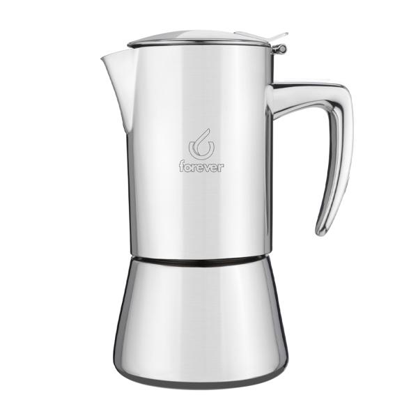FOREVER KAFETIERA MISS DIAMOND z brezčasnim videzom in impresivno privlačnostjo vas bo zagotovo navdušila. Visokokakovostno nerjaveče jeklo s sijajnim zaključko. Primerna je za uporabo na vseh kuhalnih površinah, tudi indukciji. Kafetiero lahko enostavno razstavite in pomijete v pomivalnem stroju.