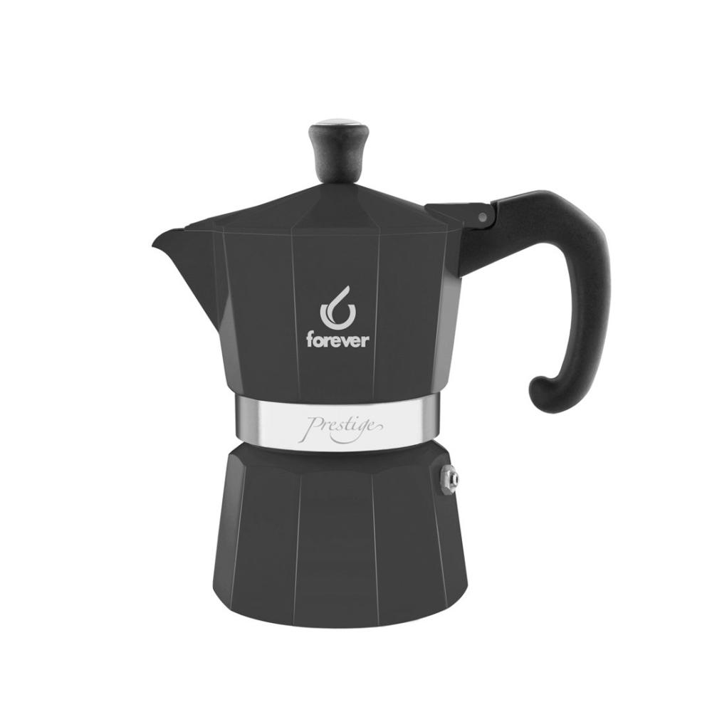 Kakovostno in estetsko zasnovana FOREVER KAFETIERA MISS PRESTIGE NOBLESSE NEW bo resnično pritegnila pozornost s svojo matirano črno-modro barvo. Njena klasično zasnovana oblika je izdelana iz aluminija varnega za živila, ki je primeren za uporabo na vseh štedilnikih, RAZEN za indukcijo. Če imate indukcijski štedilnik priporočamo FOREVER KAFETIERO MISS PRESTIGE.