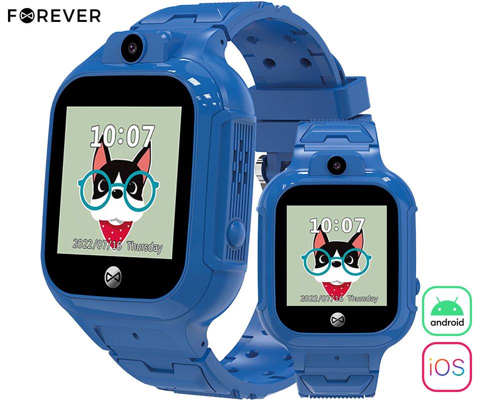 FOREVER See Me! 3 KW-320 otroška pametna ura, VoLTE, 1.4" zaslon, GPS+WiFi+LBS lociranje, video klici, SOS funkcija, Android + iOS, aplikacija, IP65, pedometer, igre, modra (Electric Blue)