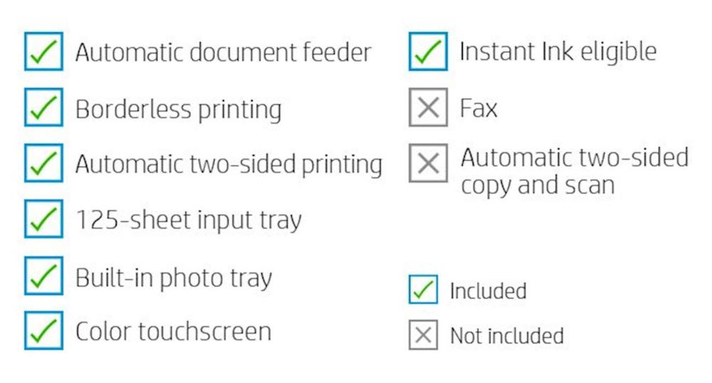 | Funkcije pisarniške naprave: | Vgrajeni spletni brskalnik, senzor za samodejni papir, Mopria certificiran, mobilno tiskanje, HP takojšnje črnilo, HP-jeva tehnologija samodejnega izklopa |