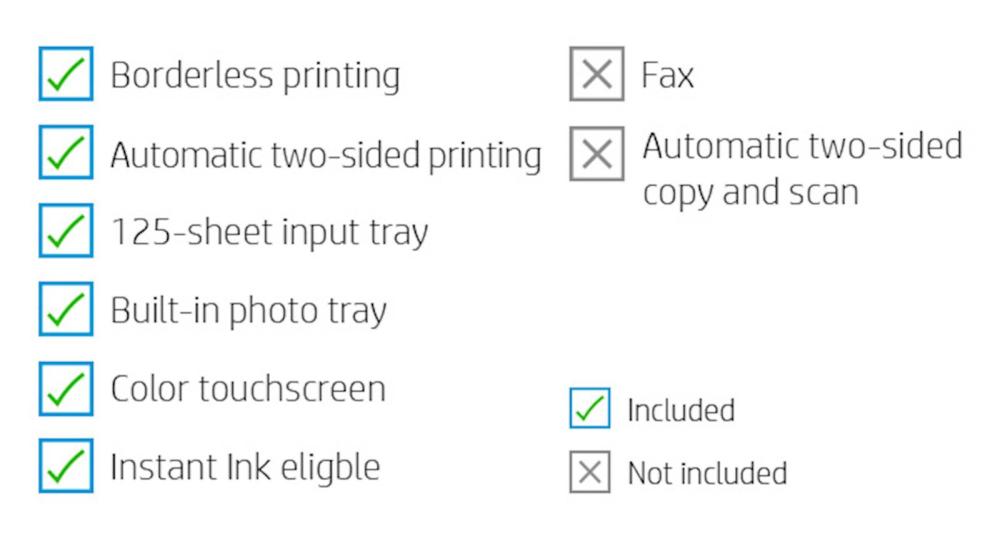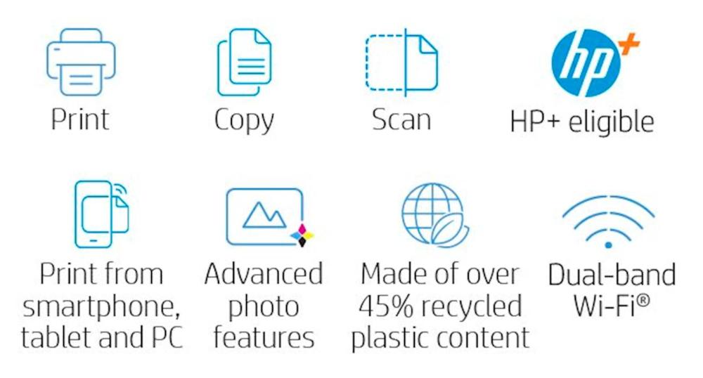 | Funkcije pisarniške naprave: | Vgrajeni spletni brskalnik, senzor za samodejni papir, Mopria certificiran, mobilno tiskanje, HP takojšnje črnilo, HP-jeva tehnologija samodejnega izklopa |