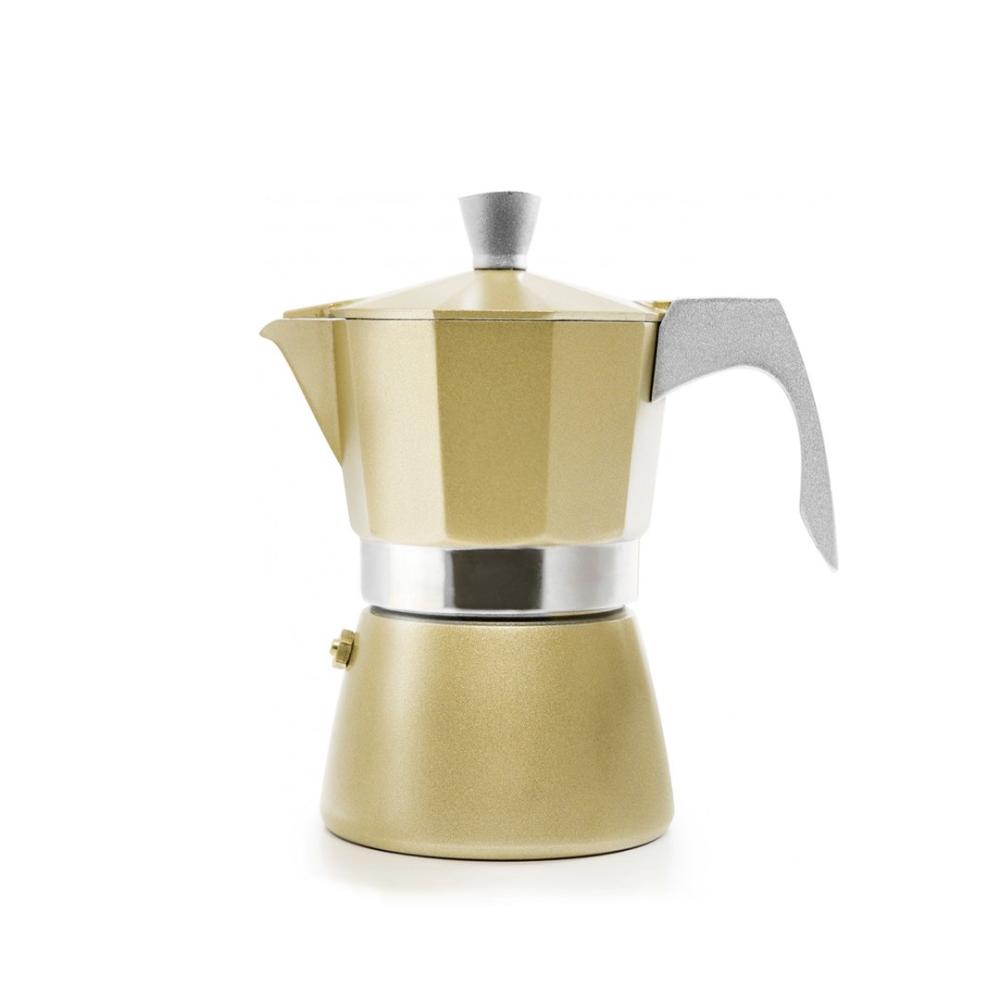 Če imate radi dobro kavo, jo poskusite pripravite v IBILI KAFETIERI GOLDEN. Kava, pripravljena v tej aluminijasti kafetieri vas bo zares očarala. Primerna je za uporabo na vseh kuhalnih površinah, tudi indukcijo debelina dna 5 mm). Elegantna kafetiera v zlati barvi zadostuje za 3 skodelice kave (150 ml).