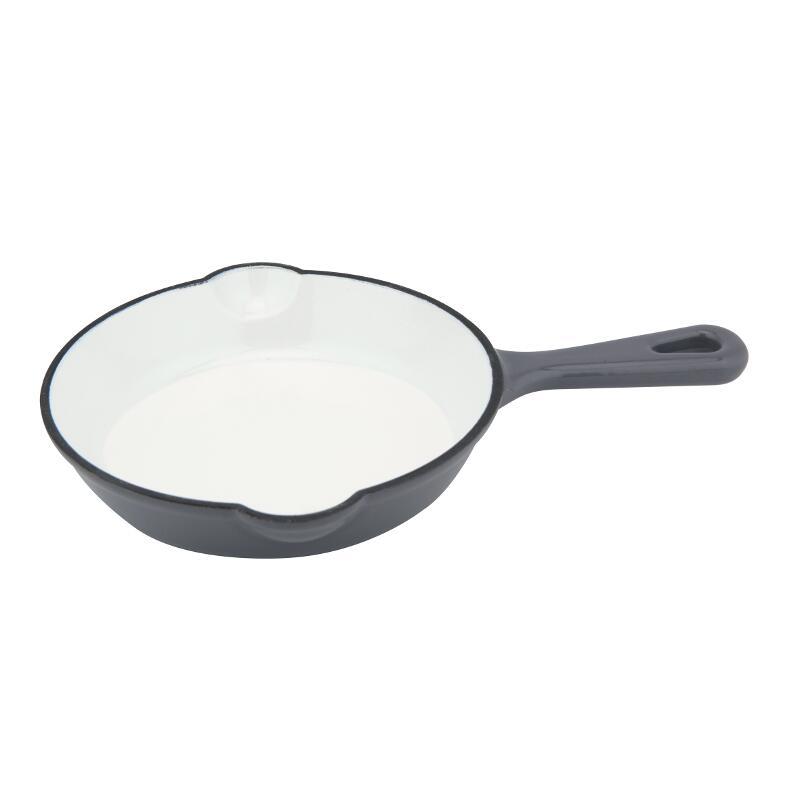 ILSA mini ponev iz emajliranega litega železa v sivi barvi z dvema odtočnima izlivoma, z enim ročajem in premerom 16 cm je idealna za serviranje prigrizkov in mini porcij po principu finger food-a na praktičen in očarljiv način. Celotna linija mini ponev je na voljo v dveh različnih barvah – v sivi ali rdeči. Na ta način je serviranje jedi še bolj posebno in barvito. Ponev lahko uporabljate za pripravo mini porcij hrane ali pa v njej preprosto servirate jedi direktno na mizo. Ilsine ponve so priljubljene v sektorju gostinstva in za vse tiste, ki iščete izvirne načine za pogostitve z aperitivi, prigrizki in posameznimi porcijami toplih ali hladnih jedi. Lito železo namreč odlično ohranja temperaturo, tako toplo kot hladno. Ponev lahko predhodno postavite v zmrzovalnik in jo nato uporabite za serviranje hladnih sladic (semifreddo) in sladoleda.
