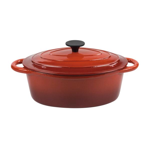 Ovalna kozica iz emajliranega litega železa dimenzij 27 x 33 cm iz linije ILSA NORMANDIE s pripadajočim pokrovom je značilne tradicionalne oblike in funkcionalnega dizajna. Zunanjost posode je v odtenkih rdeče, njena notranjost pa je bele barve. Emajl, poleg tega, da prispeva k estetiki takšne posode, znatno olajša postopek pranja in čiščenja. Pokrov je opremljen z ročajem iz termoplastične mase, ki se ne segreva. Tovrstna posoda je posebej primerna za enolončnice, pečenke in za jedi, za katere je značilno dolgo kuhanje v lastnih sokovih, brez dodajanja začimb. Načelo kuhanja enolončnic v litoželeznih posodah temelji na tako imenovanem kuhanju s kondenzacijo. Lito železo namreč omogoča optimalno izkoriščanje tekočin, ki jih živila sproščajo med kuhanjem, vzdržuje pravo stopnjo vlažnosti, živila pa se enakomerno kuhajo, kar omogoča intenzivne okuse. S serviranjem jedi direktno iz litoželezne posode pa dosežete to, da ostane hrana dlje časa vroča. Priporočamo ročno pranje posode.