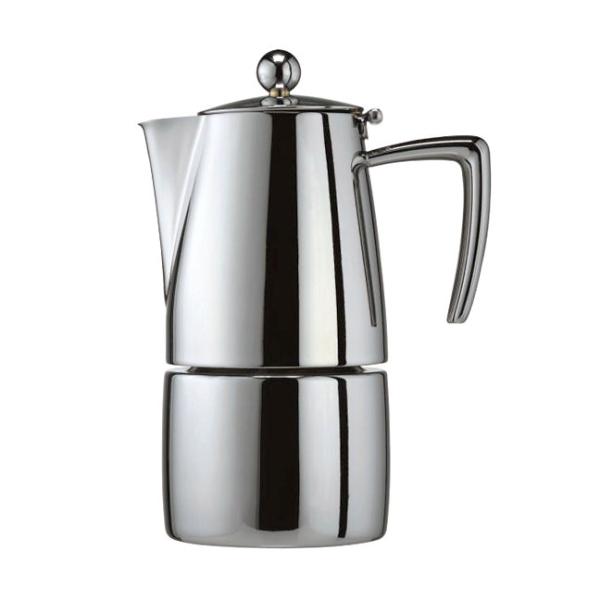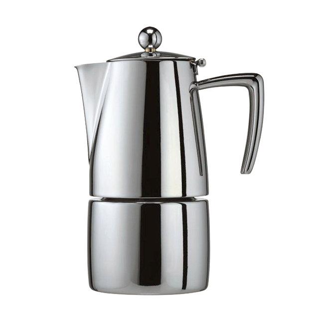 Ilsa Slancio kafetiera z izvirnim dizajnom je lahko odlična ideja za darilo za vse ljubitelje prave italijanske kave. Izdelana je iz poliranega nerjavečega jekla 18/10, njeno dno pa je primerno tudi za indukcijsko kuhalno površino. Kafetiera Slancio ima eleganten sodoben dizajn, ergonomski ročaj in izliv proti kapljanju za čisto in natančno nalivanje. Kafetiera se ponaša z ročajem in pokrovom na ročaju, ki se ne segrevata ter redukcijskim filtrom za zmanjšanje količine pripravljene kave. Primerna je za serviranje 4 skodelic ali manj. Pomijte jo ročno.
