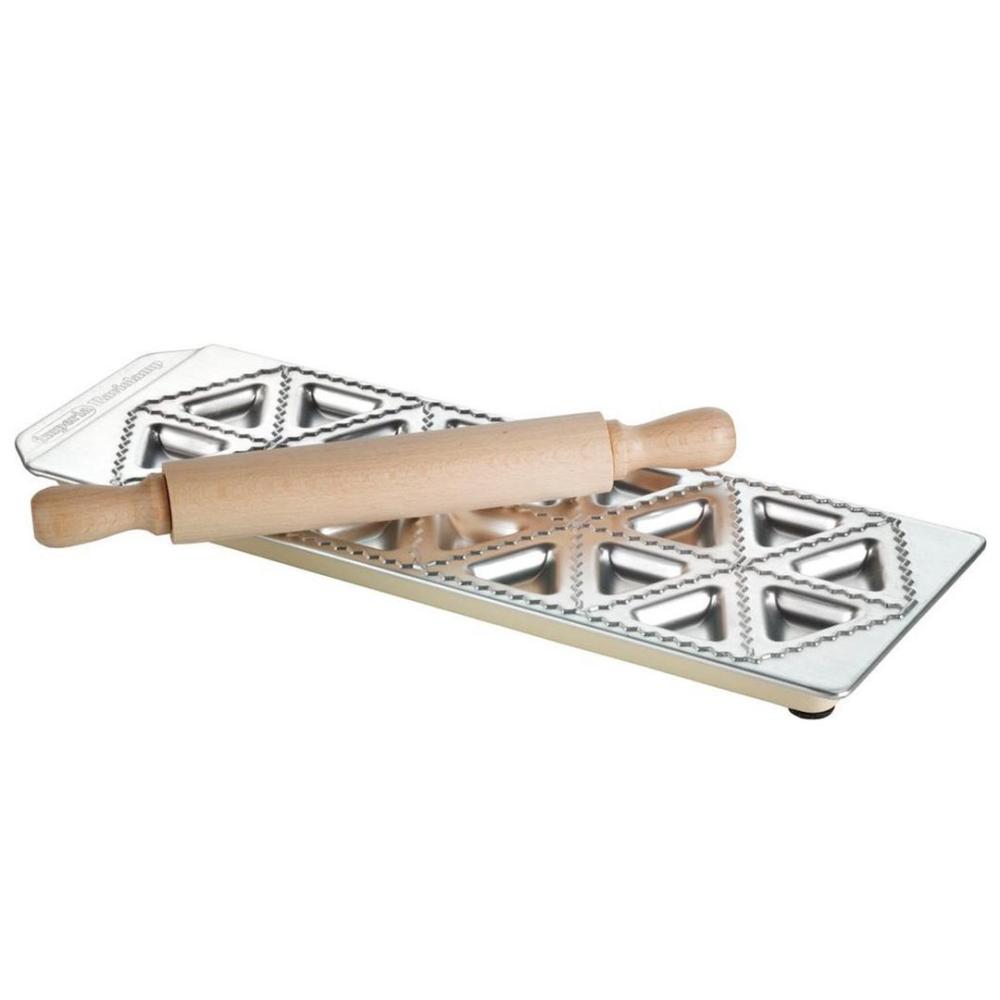 IMPERIA MODEL ZA RAVIOLE RAVIOLAMP 18 TORTELLI iz linije RAVIOLAMP je izdelan iz aluminija in je odličen pripomoček za pripravo tradicionalnih italijanskih polnjenih testenin – raviolov. S kalupom s trikotnimi oblikami boste pripravili 18 raviolov.