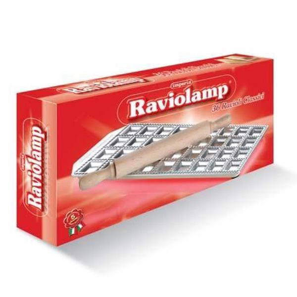 IMPERIA MODEL ZA KLASIČNE RAVIOLE Z VALJARJEM 36 iz linije RAVIOLAMP je izdelan iz aluminija in je odličen pripomoček za pripravo tradicionalnih italijanskih polnjenih testenin – raviolov. S kalupom s kvadratnimi oblikami boste pripravili 36 raviolov, 34 x 34 mm.