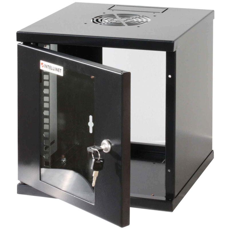 INTELLINET 10'' 6U črna zidna komunikacijska omara vam nudi fleksibilno in celovito rešitev za vaše omrežne instalacije. Omare so dostavljene sestavljene, saj s različico flat pack prihranite prostor in denar. Glede ohišja lahko izbirate med izjemno kompaktnimi 10" omarami in številnimi 19" različicami z globino vgradnje od 300 do 600 mm.