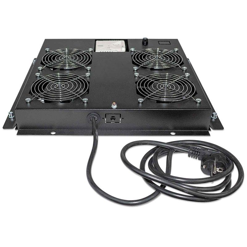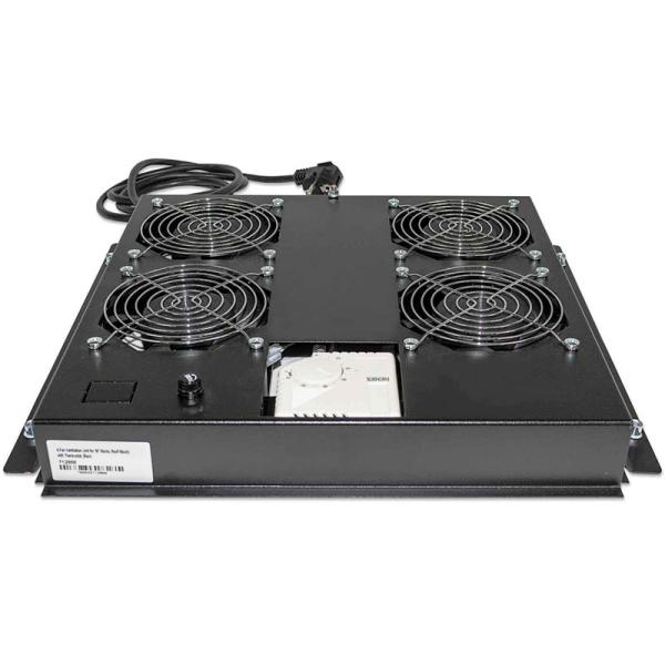 INTELLINET 19'' stropna hladilna enota s termostatom in 4 ventilatorji zagotavlja zanesljivo hlajenje in idealno pretočnost zraka v 19'' omarah za izboljšano delovanje in daljšo življenjsko dobo mrežnih komponent. Površina je prevlečena z antistatičnim premazom proti prijemanju prašnih delcev. Za strežniške in mrežne omare se priporoča stropna hladilna enota.
