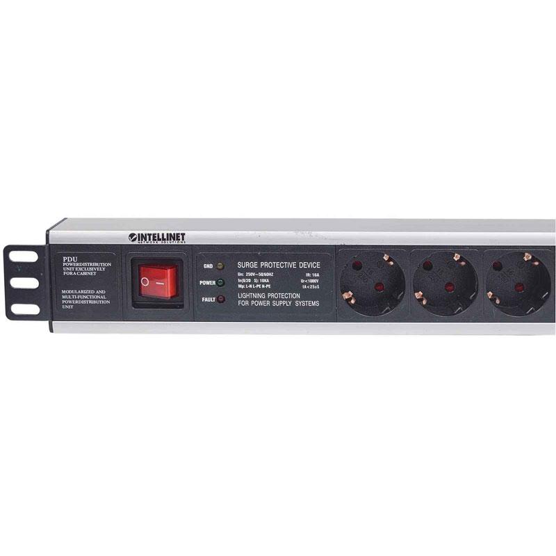 INTELLINET 19" Rackmount 1.5U 3m 6 vtičnic za omrežne omare prenapetostna zaščita razdelilec
