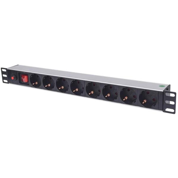 INTELLINET 19" Rackmount 1U 3m 8 vtičnic za omrežne omare razdelilec zagotavljajo zanesljivo porazdelitev energije preko enega vhoda z več izhodnimi vtičnicami. Trenutni razpon je zasnovan za distribucijo energije iz enofaznih električnih tokokrogov z nizko amperažo.
