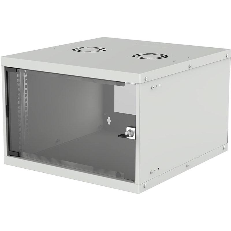 INTELLINET Basic 19'' zidna komunikacijska omara pomeni cenovno ugodno in učinkovito rešitev za namestitev vaše mrežne opreme. Ocena IP20 je dosežena s hladno valjanim, pocinkanim jeklom in reverzibilnimi vrati iz kaljenega stekla, ki omogočajo enostaven dostop v omejenih prostorih.
