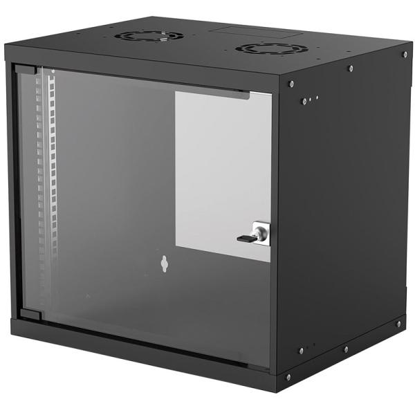 INTELLINET Basic 19'' zidna komunikacijska omara pomeni cenovno ugodno in učinkovito rešitev za namestitev vaše mrežne opreme. Ocena IP20 je dosežena s hladno valjanim, pocinkanim jeklom in reverzibilnimi vrati iz kaljenega stekla, ki omogočajo enostaven dostop v omejenih prostorih.