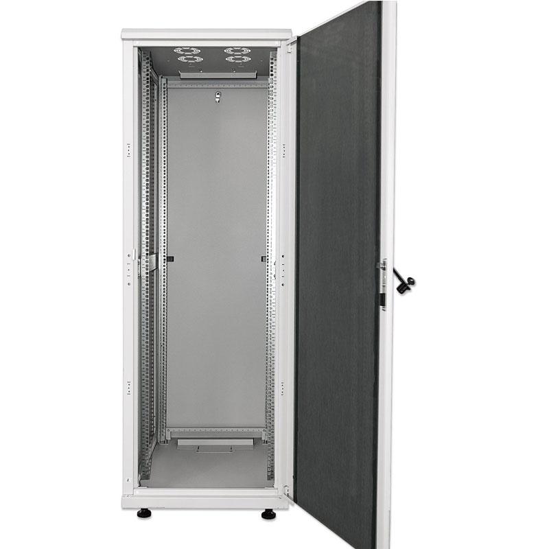 INTELLINET Standard samostoječa komunikacijska omara nudi fleksibilno in celovito rešitev za vaše mrežne namestitve. Omara je dobavljena razstavljena, zato pri transportu prihranite pri prostoru in stroš kih. Snemljive stranske plošče in vrata iz kaljenega stekla, ki jih je mogoče zakleniti, še posebej olajšajo urejanje kablov in menjavo komponent.