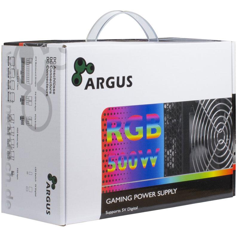 Argus RGB-500W II, certificiran z 80PLUS Bronze in opremljen z aktivnimi PFC ter 1x PCI-E priključki, je odlična izbira za igralne ali grafične računalnike. Trpežna črna prevleka ter dolgi in prilagodljivi kabli dopolnjujejo odlično ponudbo.