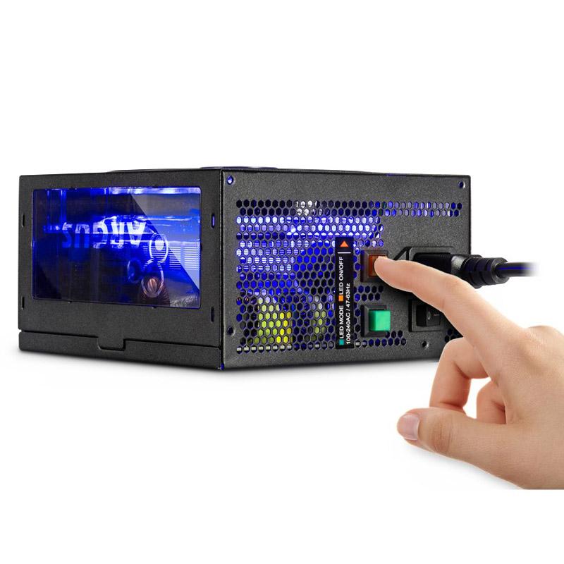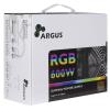 INTER-TECH Argus RGB-600W CM II napajalnik pritegne pozornost s svetlobnimi učinki RGB osvetljenega 140 mm ventilatorja. Z gumbom na zadnji strani napajalnika lahko nadzorujete, katere barve so LED lučke v obroču ventilatorja. Če želite še več nadzora na LED lučkami lahko povežete nadzorni kabel s sprednjim panelom (na primer na reset gumb) ali pa pustite, da napajalnik samodejno menja barve. Stranica iz akrilnega stekla in Argus logo pritegneta še dodatno pozornost.