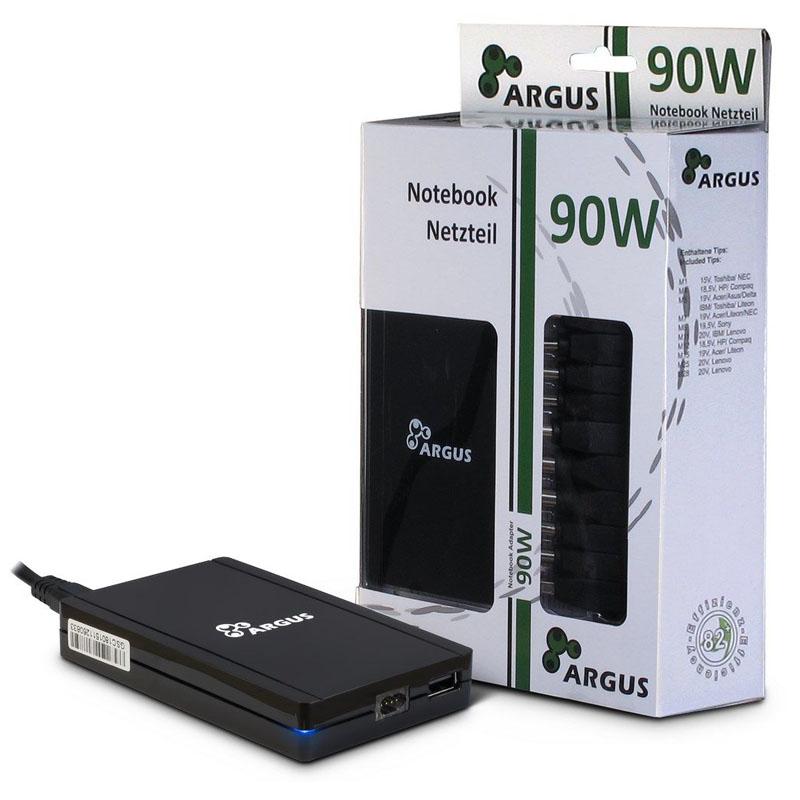 Univerzalni napajalnik za prenosnike Inter-Tech Argus USN90-UCB lahko napaja večino prenosnikov na trgu. Priloženih je 10 različnih nastavkov. S tankim dizajnom ga lahko pospravite skoraj v vsako torbo za prenosnike. Omogoča samodejno spreminjanje napetosti glede na izbran nastavek. Dodatno je Argus USN90-UCB opremljen z USB priključkom za polnjenje USB naprav, kot so pametni telefoni in tablice. Ponuja več kot 83% učinkovitosti.