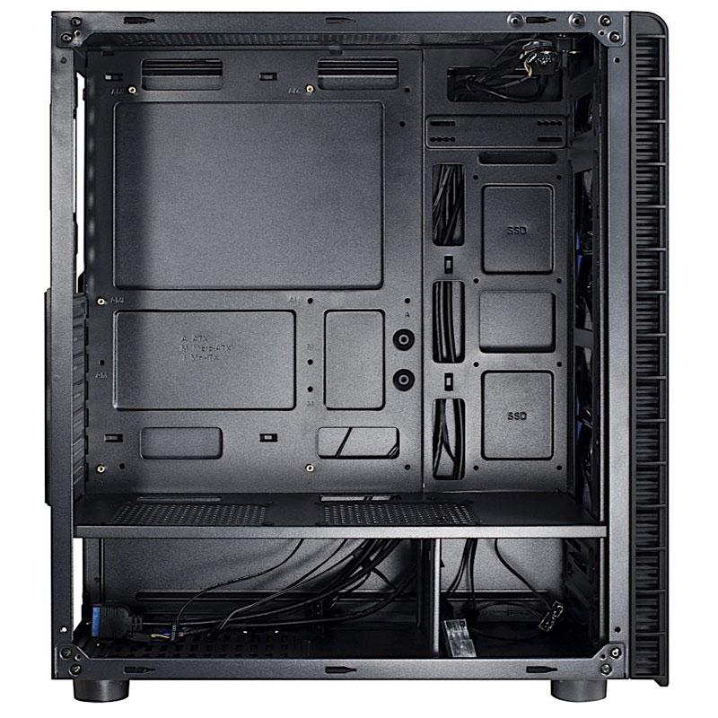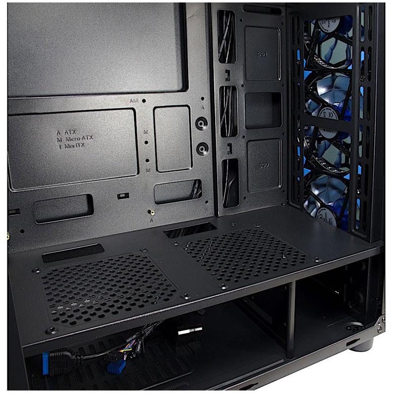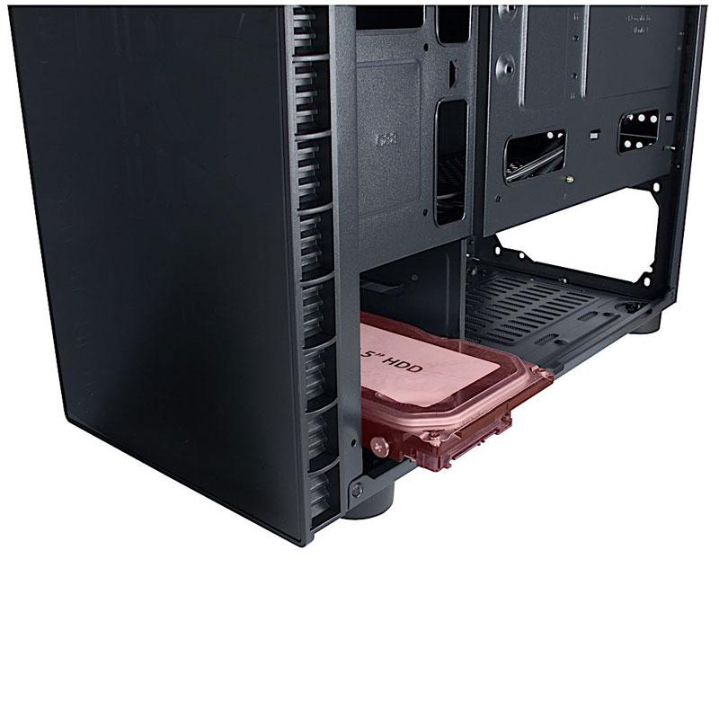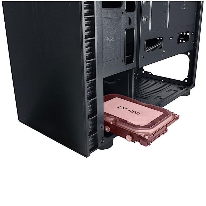 | Ventilator: | Spredaj: 3x 120 mm ali 2x 140 mm (ventilatorji so priloženi) Zadaj: 1x 120 mm (opcija) Zgoraj: 2x 120 mm ali 2x 140 mm (opcija) PSU-tunel: 2x 120mm (opcija) |