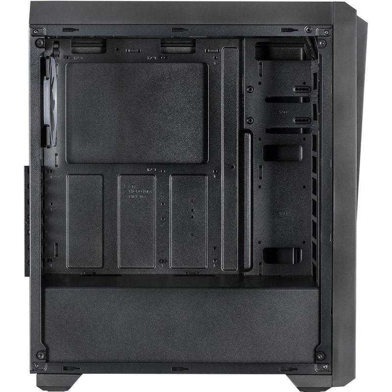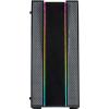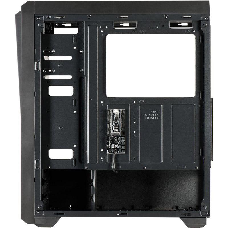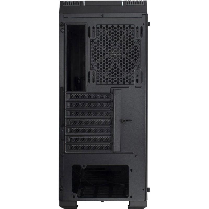 INTER-TECH S-3901 Impulse RGB gaming ohišje ima rahlo obarvano stransko ploščo iz kaljenega stekla in dva RGB LED trakova, ki potekata preko sprednje plošče in celotnega zgornjega dela ohišja. Priložen je 120-mm ventilator RGB, ki je nameščen na zadnji plošči.