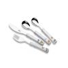 Razveselite najmlajše s simpatičnim kompletom OTROŠKEGA JEDILNEGA PRIBORA HAPPY DOG JUSTINUS, ki je izdelan iz kakovostnega nerjavečega jekla 18/0 in PVC ročaji z naslikanimi »srečnimi kužki«. 4-delni set vsebuje otroško žlico, otroško vilico, otroško žličko in otroški nož. Lahko ga pomijete v pomivalnem stroju.