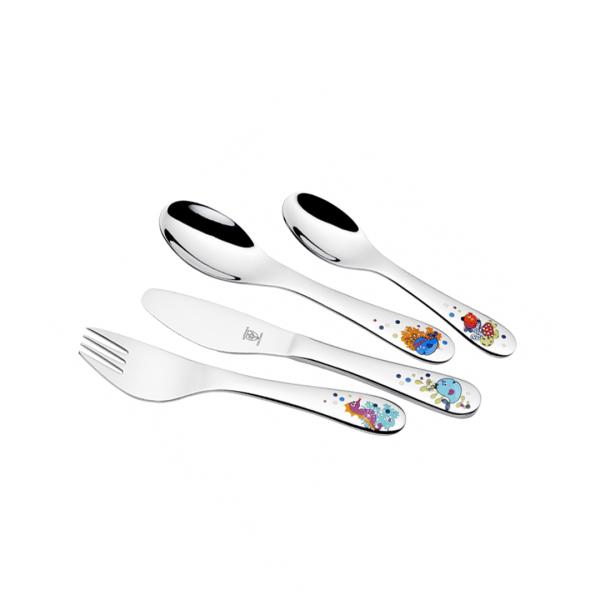 Simpatičen 4-DELNI OTROŠKI JEDILNI PRIBOR JUSTINUS z držalom okrašenim z motivom morskih živali bo zagotovo navdušil najmlajše. V celoti je izdelan iz kakovostnega nerjavečega jekla 18/0. Komplet vključuje otroško žlico, otroško vilico, otroško žličko in otroški nož. Naj uživanje hrane postane za otroke prava dogodivščina.