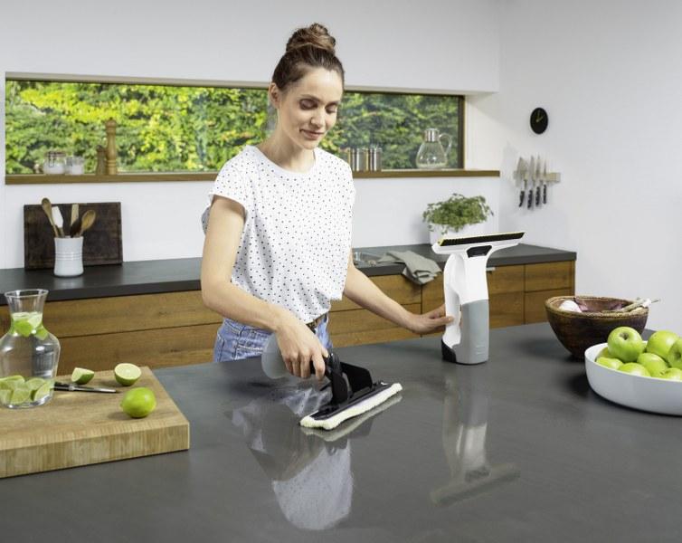 Kärcher je ponovno izboljšal originalni WV in razvil še bolj prilagodljiv model z inovativno tehnologijo rezil in daljšim časom delovanja baterije – WV 6 Plus. Novo daljše sesalno rezilo vam omogoča, da odstranite odvečno tekočino s celotnih površin v samo enem polnjenju. Izjemno dolg čas delovanja baterije WV 100 minut pomeni, da lahko delate še dlje. Čiščenje lahko natančno načrtujete zahvaljujoč prikazovalniku, ki prikazuje preostale minute delovanja. Kot običajno, inteligentna kombinacija razpršilne stekleničke in krpe za brisanje iz mikrovlaken, skupaj s sesalno funkcijo na čistilniku, zagotavlja izjemno učinkovito čiščenje in bleščeče čista okna – brez madežev ali ostankov. Ergonomski Kärcherjev čistilnik WV 6 Plus vam omogoča tudi čiščenje oken na posebej higieničen način, saj ne pridete v neposredni stik z umazano vodo.