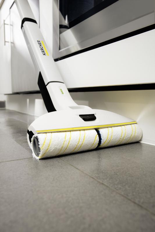 Odstranjevanje madežev in razlitih tekočin do roba - brez potrebe po vedru ali neutrudnem čiščenju. Ni mogoče? Še enkrat razmislite! Čistilnik EWM 2 z dvema rezervoarjema to omogoča - in običajne krpe so odveč. Rotacijski valji se nenehno vlažijo s čisto vodo, medtem ko zbrana umazanija konča v rezervoarju za umazano vodo. Naprava pušča tla do 20% čistejša od običajnih krp za brisanje*. Zaradi tanke oblike in prilagodljivega vrtljivega spoja EWM 2 ne le zlahka seže pod pohištvo, ampak tudi prihrani prostor za shranjevanje. Čas sušenja tal je le približno dve minuti, zato je popolnoma primeren za uporabo na vseh vrstah trdih tal (na primer ploščice, parket, laminat, PVC in vinil). Zmogljiva litij-ionska baterija ima čas delovanja pribl. 20 minut. To vam omogoča, da z napravo očistite do 60 m2 talne površine.
