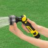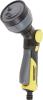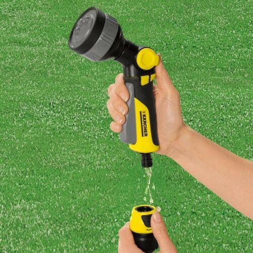 Komplet za najrazličnejše naloge zalivanja. Komplet večnamenske razpršilne pištole Plus se prilagodi najrazličnejšim potrebam zalivanja različnih rastlin. Komplet večnamenske razpršilne pištole Plus (št. 2.645-269.0) zaliva zanesljivo in brez kapljanja. Na voljo ima 4 različne vrste curka: prha, točkovni in ploščati curek, ter tudi fina vodna meglica. S tem večnamenska pištola ne bo kos le nalogam zalivanja, temveč tudi bolj enostavnim nalogam čiščenja. Vrtljiv ročaj, s katerim lahko sprožilec z blokado/deblokado usmerite naprej ali nazaj, omogoča individualno udobje uporabnika, ki je tipičen za Kärcherjeve izdelke. Poleg tega komplet vsebuje tudi dve kakovostni univerzalni spojki Plus z elementom za lažji oprijem - ena z zaščito Aqua Stop - ter priključek za pipo G3/4" z reducirnim nastavkom G1/2". S praktično zaščito Aqua Stop preprečite pretok vode tudi takrat, ko ste s cevi sneli razpršilnik in je pipa za vodo odprta. Spojke so poleg tega univerzalno uporabe tudi za vse dobavljive premere vrtnih cevi. Naj dodamo še: Kärcherjevi pršilni nastavki in spojke so združljive z vsemi dobavljivimi sistemi na klik in jih brez težav priklopite na vaše vrtne cevi.