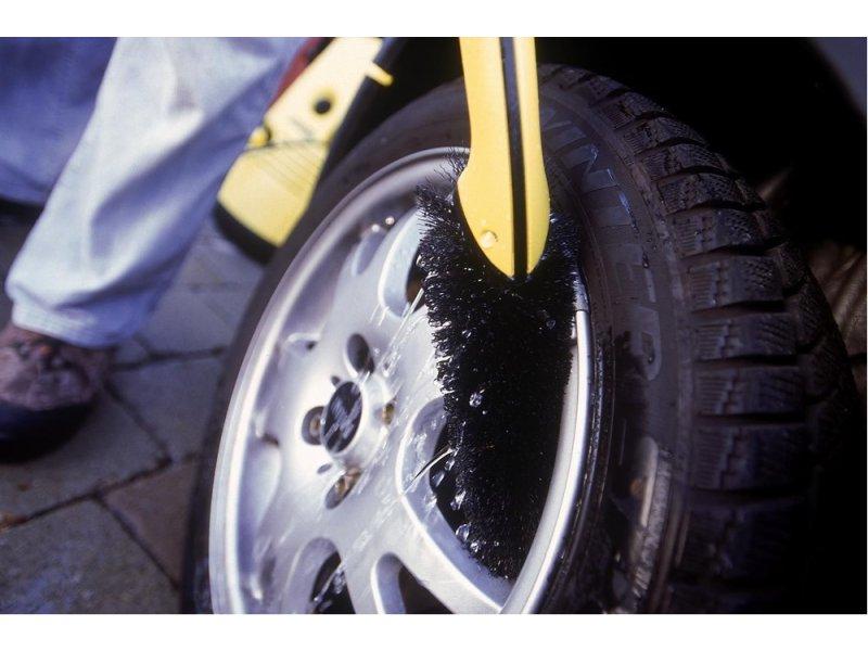 Pralna krtača za platišča zahvaljujoč njeni posebni obliki in ščetinam zagotavlja kar najbolj učinkovito 360° čiščenje. S krtačo boste dosegli in brezkompromisno očistili celo težko dostopna mesta in najmanjša vmesna mesta na platiščih ali špicah kolesa. Z enakomerno porazdelitvijo vode po vseh 360° se bo umazanija enotno raztopila in sprala. Ostalo bodo opravile kakovostne ščetine. Vse kar bo ostalo, so enakomerni in vsepovsod čisti rezultati čiščenja. Pokrivna matica, ki je prav tako vključena v obseg dobave, zagotavlja stabilen položaj v visokotlačni pištoli. Ergonomsko oblikovan ročaj zagotavlja enostavno in udobno rokovanje. Na kratko: idealna rešitev za bleščeče čista platišča in špice koles. Pralna krtača za platišča je primerna za vse Kärcherjeve Consumer visokotlačne čistilnike razredov K2 - K7.